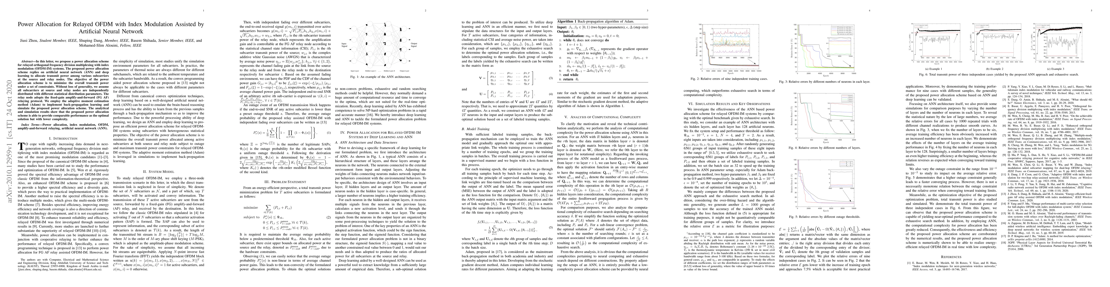 This paper proposes a power allocation scheme for OFDM-IM systems using an ANN and deep learning to minimize transmit power. The scheme employs the Adam method for back-propagation learning and demonstrates comparable performance to the optimal solution with lower complexity.