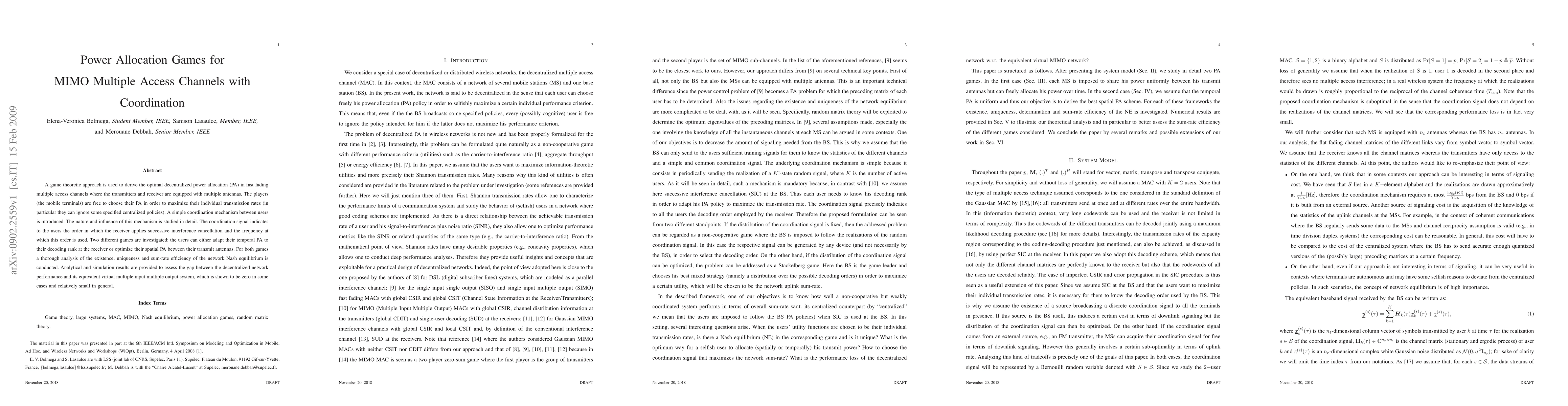 This research paper explores game-theoretic approaches to optimize power allocation in MIMO multiple access channels with coordination between users. It finds that the decentralized network performance is close to its virtual MIMO system counterpart in some cases and relatively small in general.