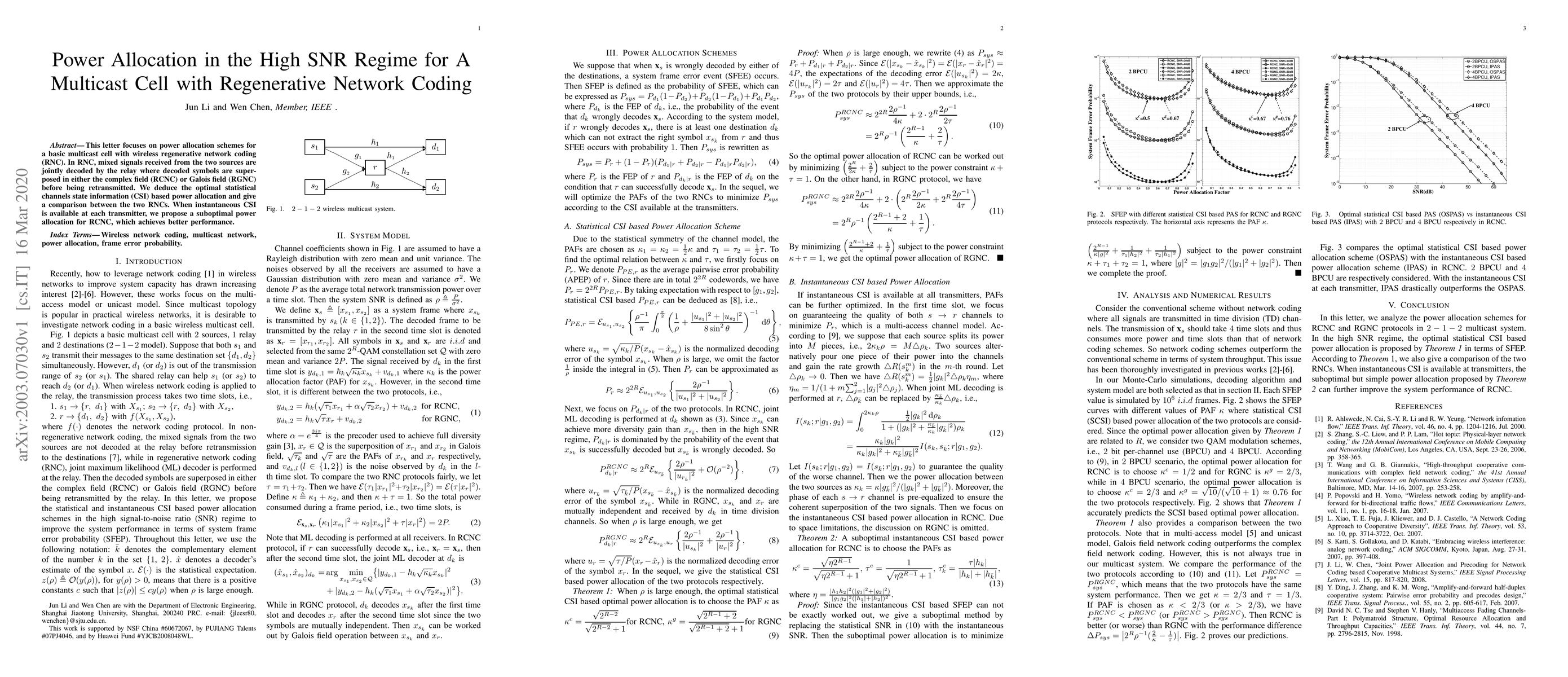 This letter focuses on power allocation schemes for a basic multicast cell with wireless regenerative network coding (RNC). In RNC, mixed signals received from the two sources are jointly decoded by the relay where decoded symbols are superposed in either the complex field (RCNC) or Galois field (RGNC) before being retransmitted. We deduce the optimal statistical channels state information (CSI) based power allocation and give a comparison between the two RNCs. When instantaneous CSI is available at each transmitter, we propose a suboptimal power allocation for RCNC, which achieves better performance.