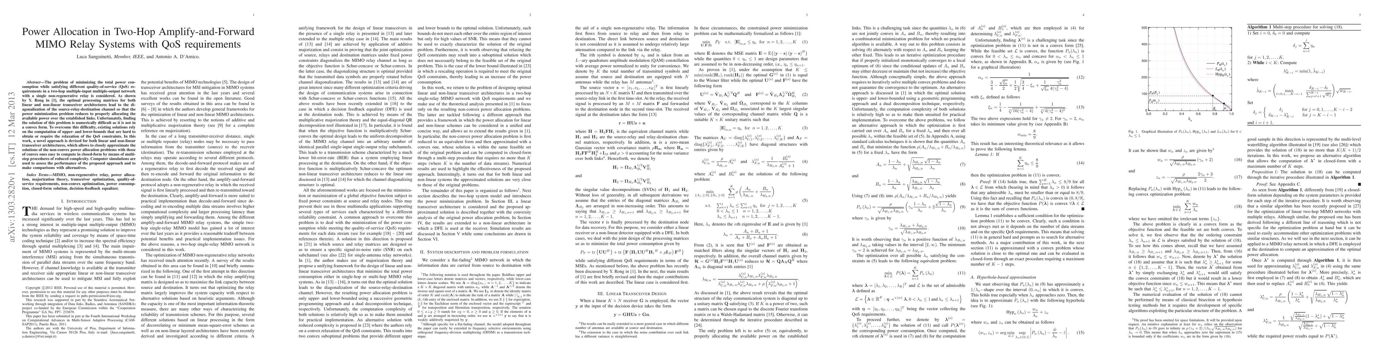 This paper proposes a novel approach to minimize power consumption in two-hop MIMO relay systems while meeting QoS requirements, transforming the non-convex problem into a series of convex problems for easier computation. Simulation results compare the performance of the proposed method against existing solutions.