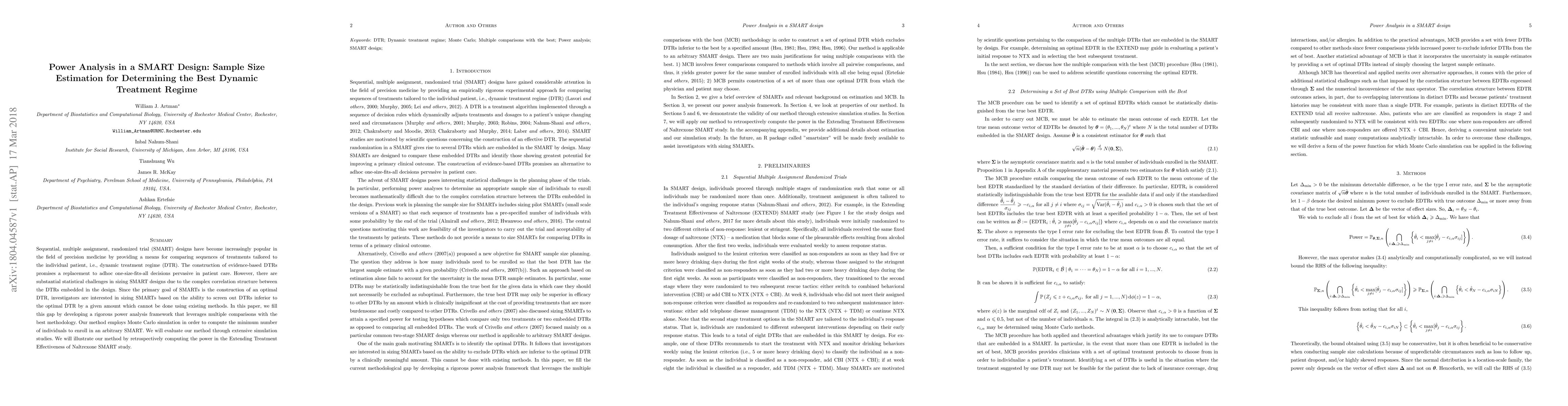 This paper develops a new power analysis framework for Sequential, Multiple Assignment, Randomized Trials (SMART) to determine the optimal dynamic treatment regime. The proposed method uses Monte Carlo simulation to compute the minimum sample size needed to identify superior treatment strategies, addressing existing limitations in current methods.
