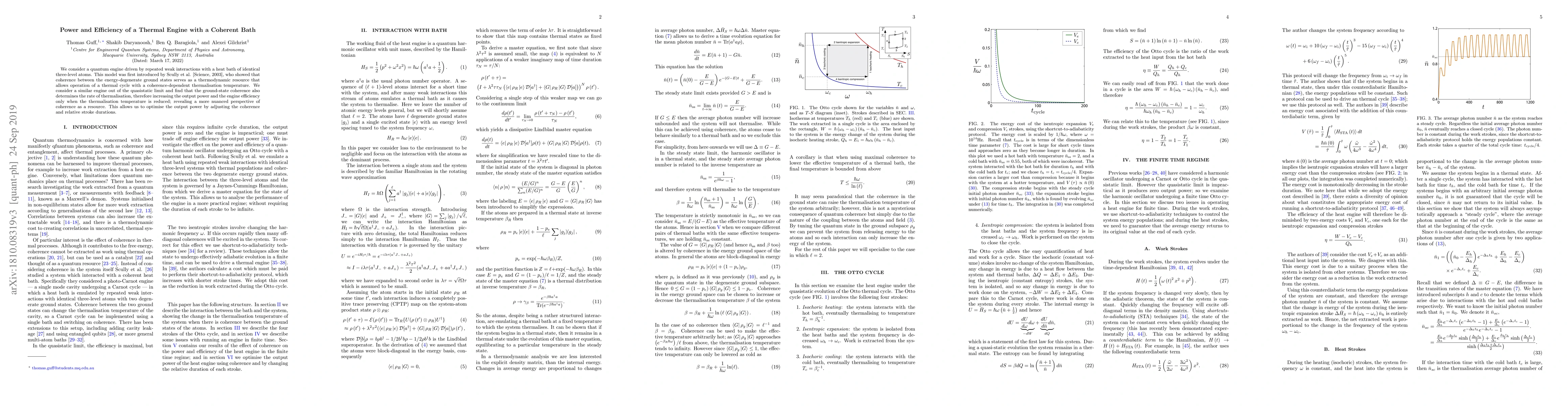 We consider a quantum engine driven by repeated weak interactions with a heat bath of identical three-level atoms. This model was first introduced by Scully et al. [Science, 2003], who showed that coherence between the energy-degenerate ground states serves as a thermodynamic resource that allows operation of a thermal cycle with a coherence-dependent thermalisation temperature. We consider a similar engine out of the quasistatic limit and find that the ground-state coherence also determines the rate of thermalisation, therefore increasing the output power and the engine efficiency only when the thermalisation temperature is reduced; revealing a more nuanced perspective of coherence as a resource. This allows us to optimise the output power by adjusting the coherence and relative stroke durations.