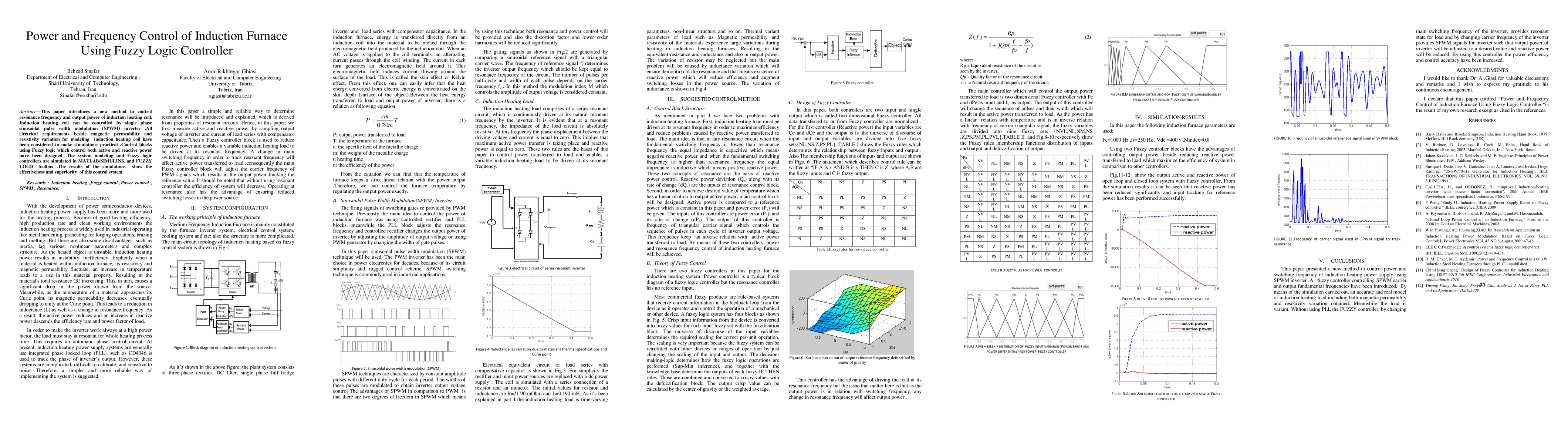 This paper proposes a Fuzzy Logic Controller to manage the resonance frequency and output power of an induction heating coil, utilizing a single-phase SPWM inverter. Simulation results in MATLAB/SIMULINK demonstrate the effectiveness of this control system in managing both active and reactive power.