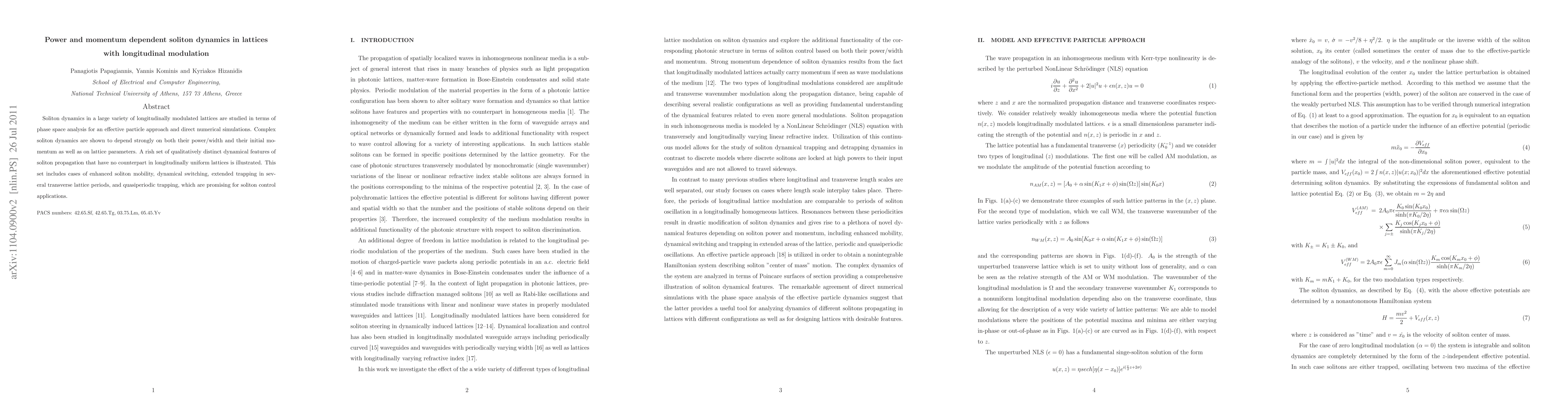 This paper investigates soliton dynamics in longitudinally modulated lattices, revealing complex behaviors dependent on soliton power/width, initial momentum, and lattice parameters. It highlights unique soliton features such as enhanced mobility, dynamical switching, and quasiperiodic trapping, offering potential for advanced soliton control applications.