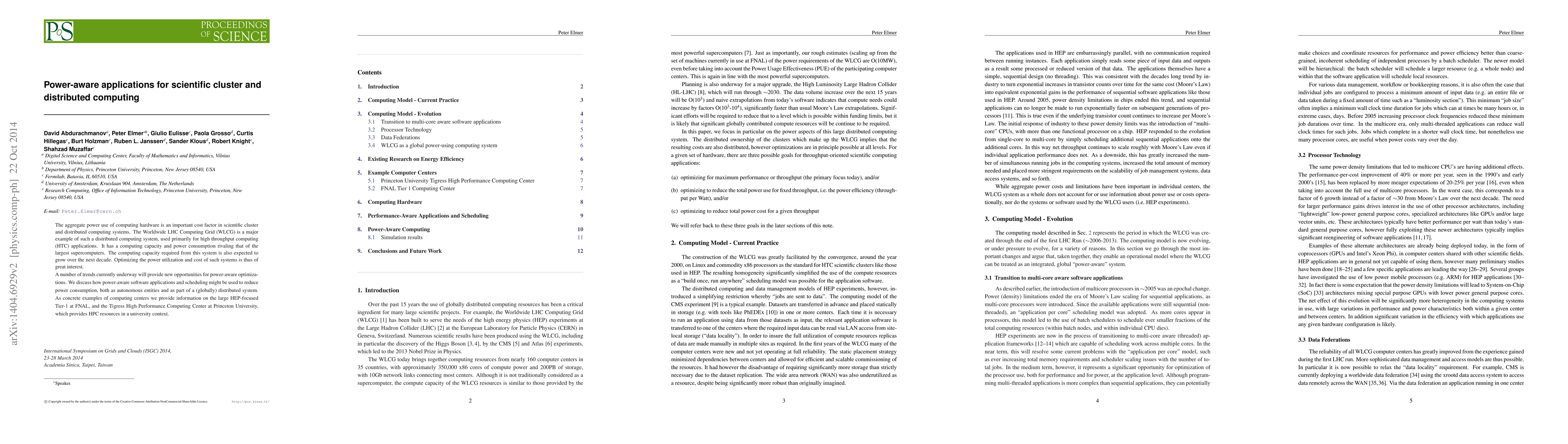 This paper explores strategies for optimizing power consumption in scientific cluster and distributed computing systems, focusing on the Worldwide LHC Computing Grid (WLCG) and other high-throughput computing environments. It discusses the potential of power-aware applications and scheduling to reduce power usage, highlighting examples from the FNAL Tier-1 and Princeton's Tigress HPC Center.
