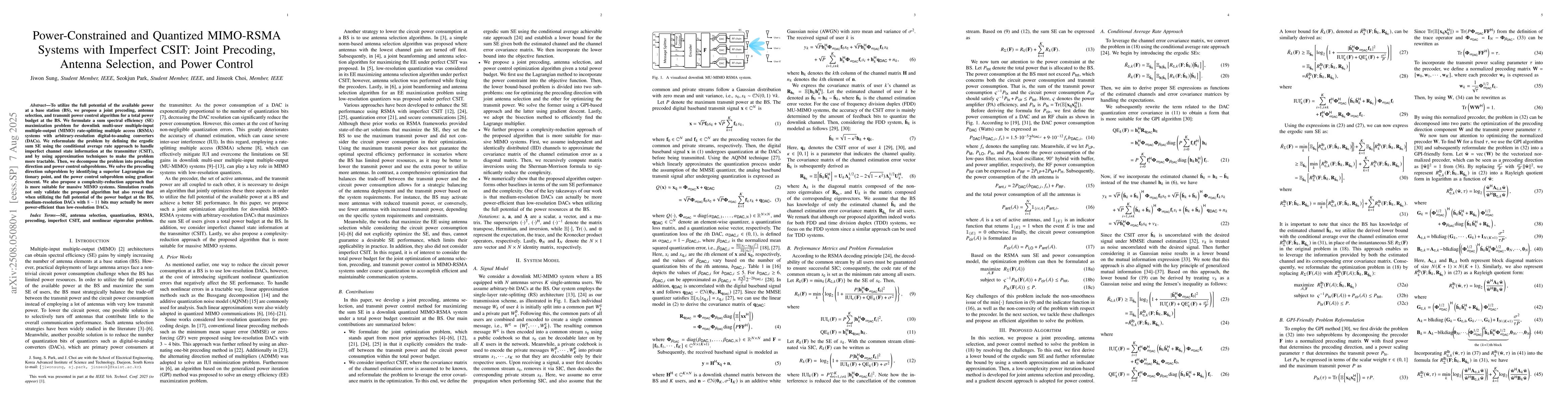 To utilize the full potential of the available power at a base station (BS), we propose a joint precoding, antenna selection, and transmit power control algorithm for a total power budget at the BS. We formulate a sum spectral efficiency (SE) maximization problem for downlink multi-user multiple-input multiple-output (MIMO) rate-splitting multiple access (RSMA) systems with arbitrary-resolution digital-to-analog converters (DACs). We reformulate the problem by defining the ergodic sum SE using the conditional average rate approach to handle imperfect channel state information at the transmitter (CSIT), and by using approximation techniques to make the problem more tractable. Then, we decompose the problem into precoding direction and power control subproblems. We solve the precoding direction subproblem by identifying a superior Lagrangian stationary point, and the power control subproblem using gradient descent. We also propose a complexity-reduction approach that is more suitable for massive MIMO systems. Simulation results not only validate the proposed algorithm but also reveal that when utilizing the full potential of the power budget at the BS, medium-resolution DACs with 8-11 bits may actually be more power-efficient than low-resolution DACs.