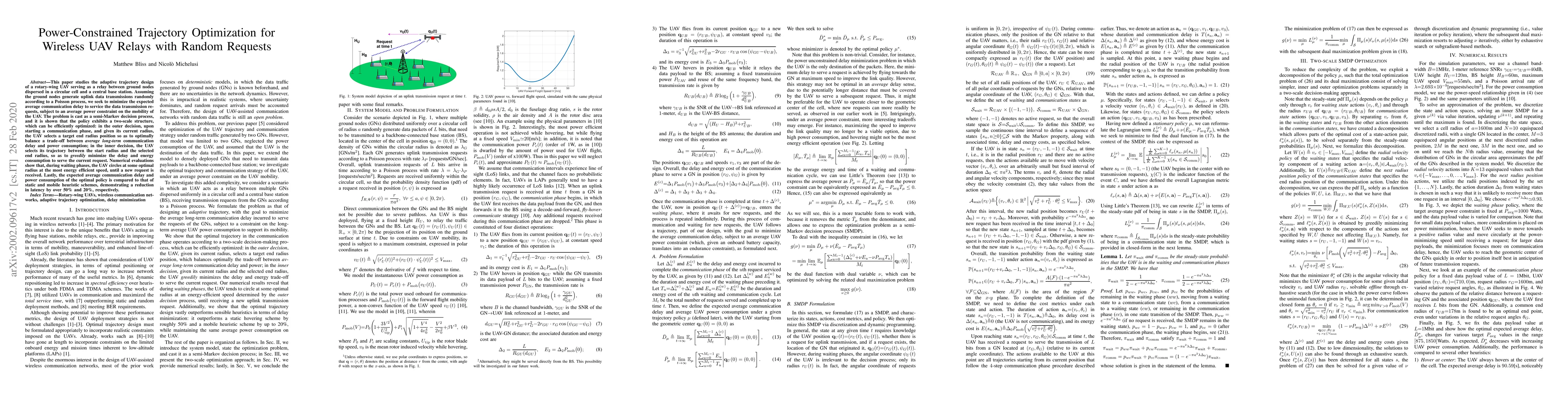 This paper optimizes the adaptive trajectory of a UAV relay to minimize communication delay for random data requests, balancing power constraints. The optimal policy balances long-term delay and power, showing a 50% reduction in latency and 20% in power compared to heuristics.