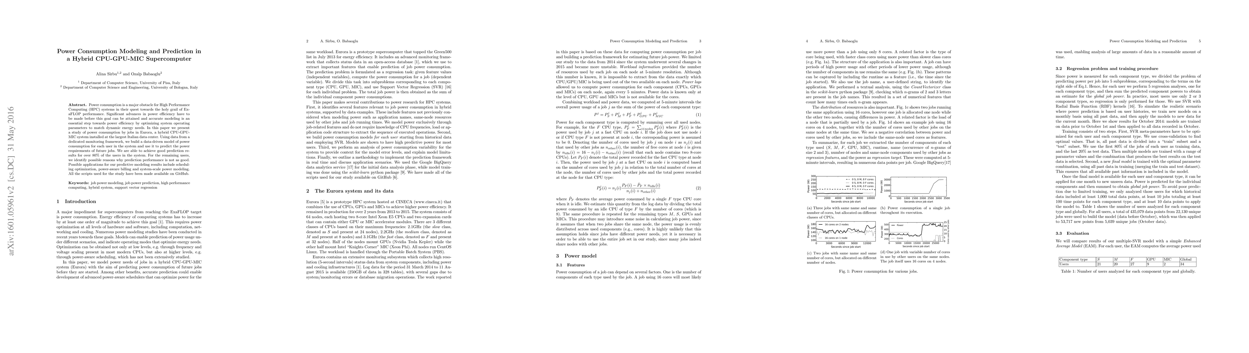 Researchers developed a power consumption modeling and prediction system for a hybrid CPU-GPU-MIC supercomputer, achieving accurate predictions for 80% of users and identifying reasons for poor performance in others.