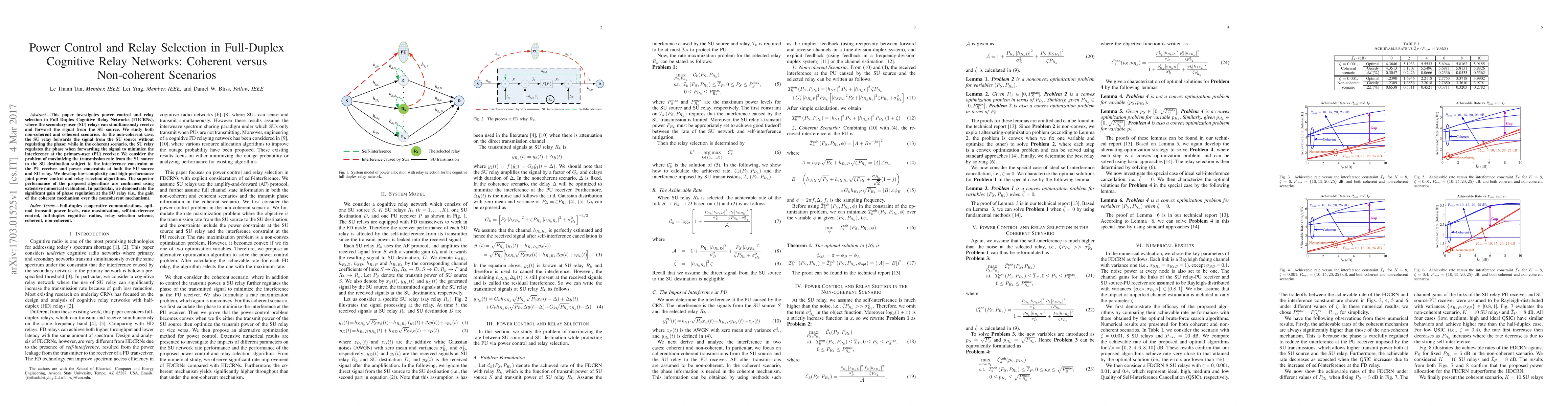 This paper develops joint power control and relay selection algorithms for Full Duplex Cognitive Relay Networks, comparing non-coherent and coherent scenarios. The coherent approach shows significant performance gains by regulating the phase at the relay to minimize interference.