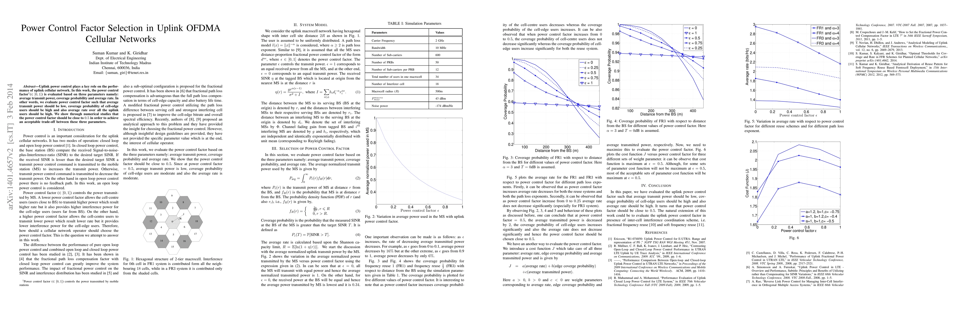 Uplink power control plays a key role on the performance of uplink cellular network. In this work, the power control factor ($\in[0,1]$) is evaluated based on three parameters namely: average transmit power, coverage probability and average rate. In other words, we evaluate power control factor such that average transmit power should be low, coverage probability of cell-edge users should be high and also average rate over all the uplink users should be high. We show through numerical studies that the power control factor should be close to $0.5$ in order to achieve an acceptable trade-off between these three parameters.