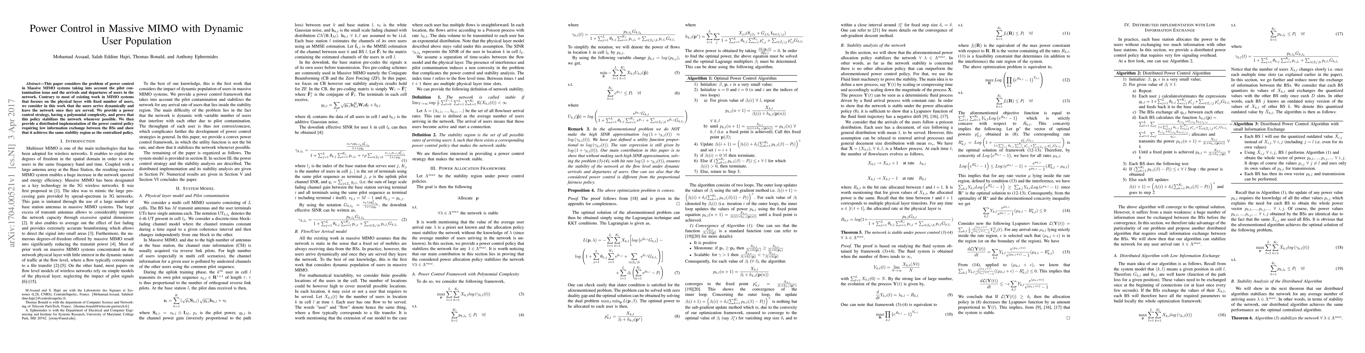 Researchers developed a power control strategy for Massive MIMO systems that adapt to dynamic user arrivals and departures, achieving polynomial complexity and stability.