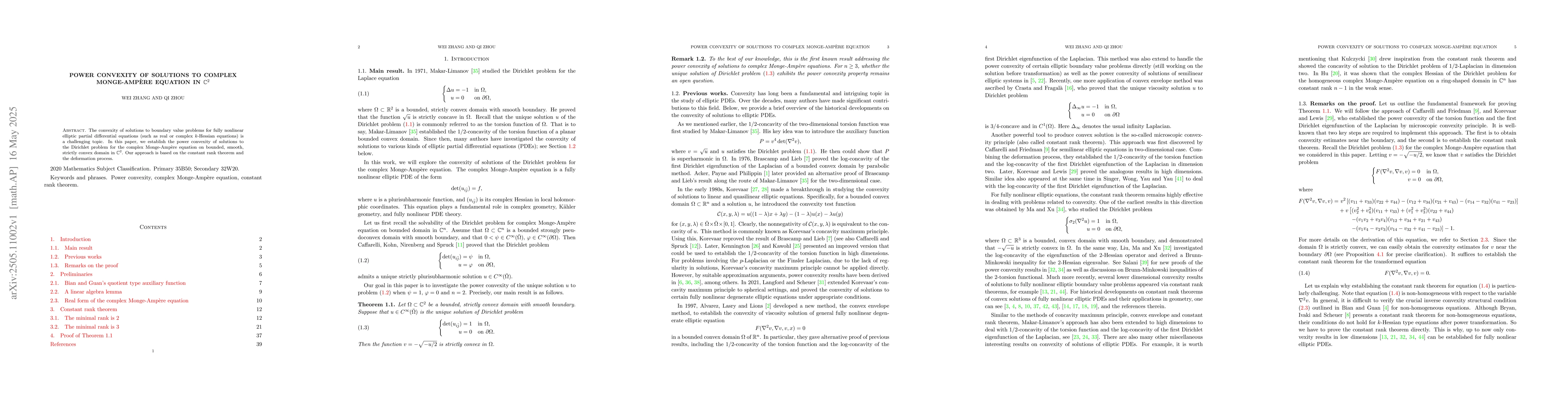 The application of the constant rank theorem and deformation process to prove power convexity in the context of complex Monge-Ampère equations.