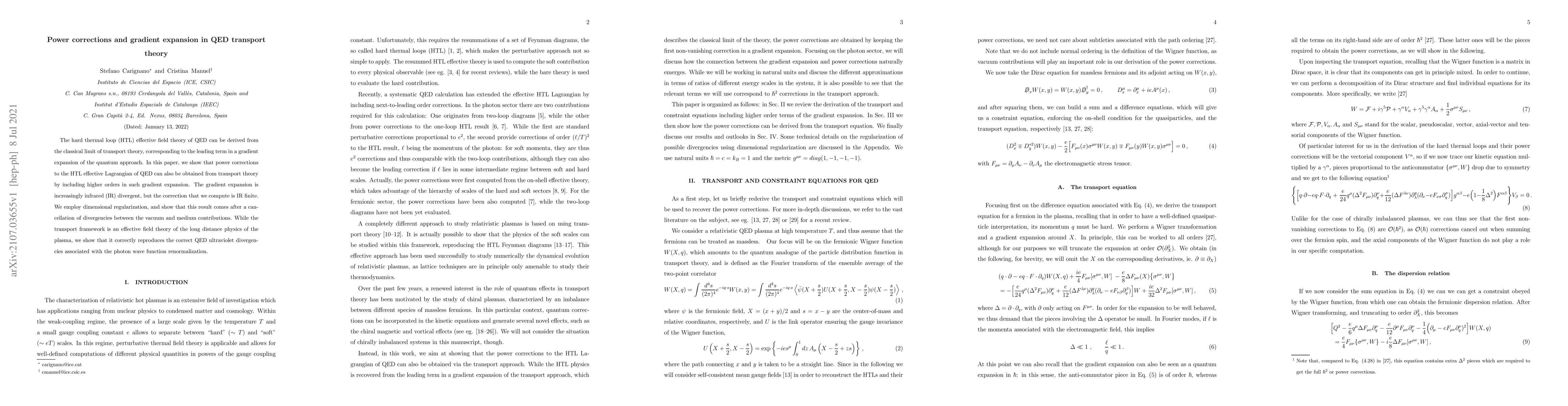 The hard thermal loop (HTL) effective field theory of QED can be derived from the classical limit of transport theory, corresponding to the leading term in a gradient expansion of the quantum approach. In this paper, we show that power corrections to the HTL effective Lagrangian of QED can also be obtained from transport theory by including higher orders in such gradient expansion. The gradient expansion is increasingly infrared (IR) divergent, but the correction that we compute is IR finite. We employ dimensional regularization, and show that this result comes after a cancellation of divergencies between the vacuum and medium contributions. While the transport framework is an effective field theory of the long distance physics of the plasma, we show that it correctly reproduces the correct QED ultraviolet divergencies associated with the photon wave function renormalization.