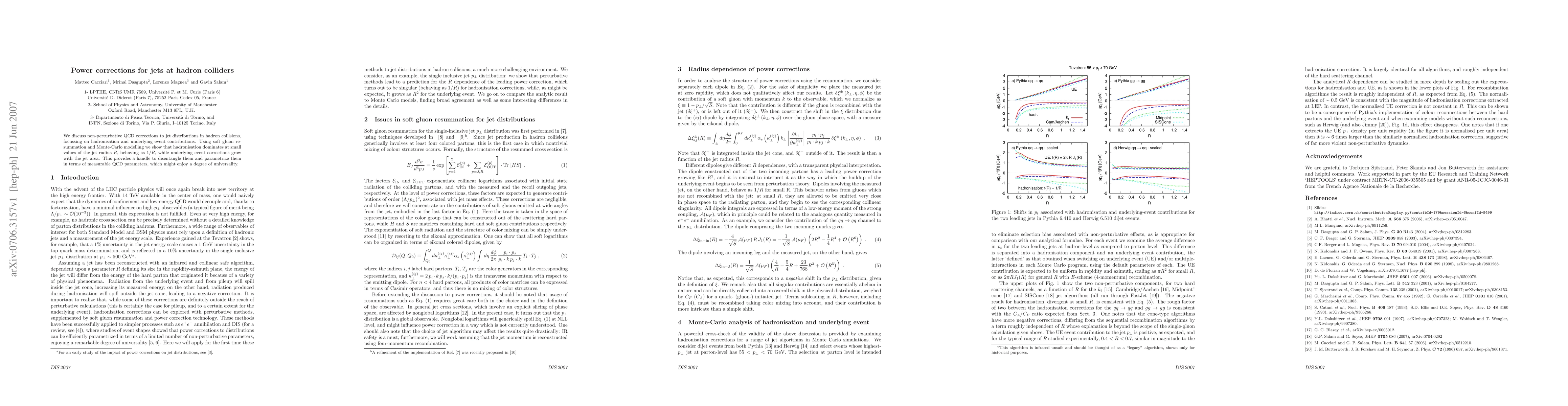 We discuss non-perturbative QCD corrections to jet distributions in hadron collisions, focussing on hadronisation and underlying event contributions. Using soft gluon resummation and Monte-Carlo modelling we show that hadronisation dominates at small values of the jet radius R, behaving as 1/R, while underlying event corrections grow with the jet area. This provides a handle to disentangle them and parametrize them in terms of measurable QCD parameters, which might enjoy a degree of universality.
