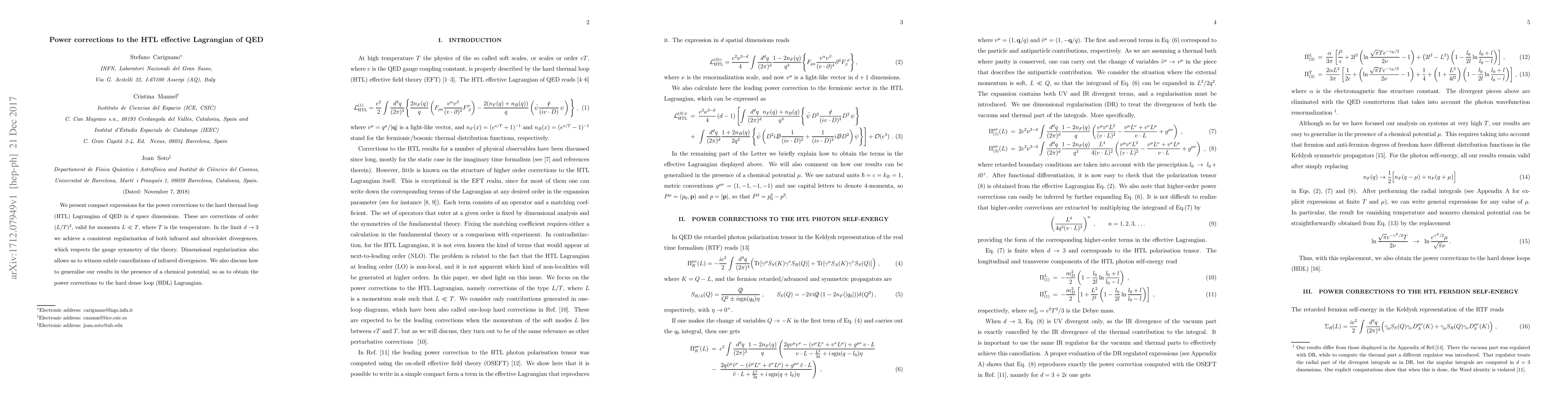 This paper presents compact expressions for power corrections to the hard thermal loop (HTL) Lagrangian of Quantum Electromagnetism (QED) in d space dimensions, resolving infrared and ultraviolet divergences while respecting gauge symmetry.
