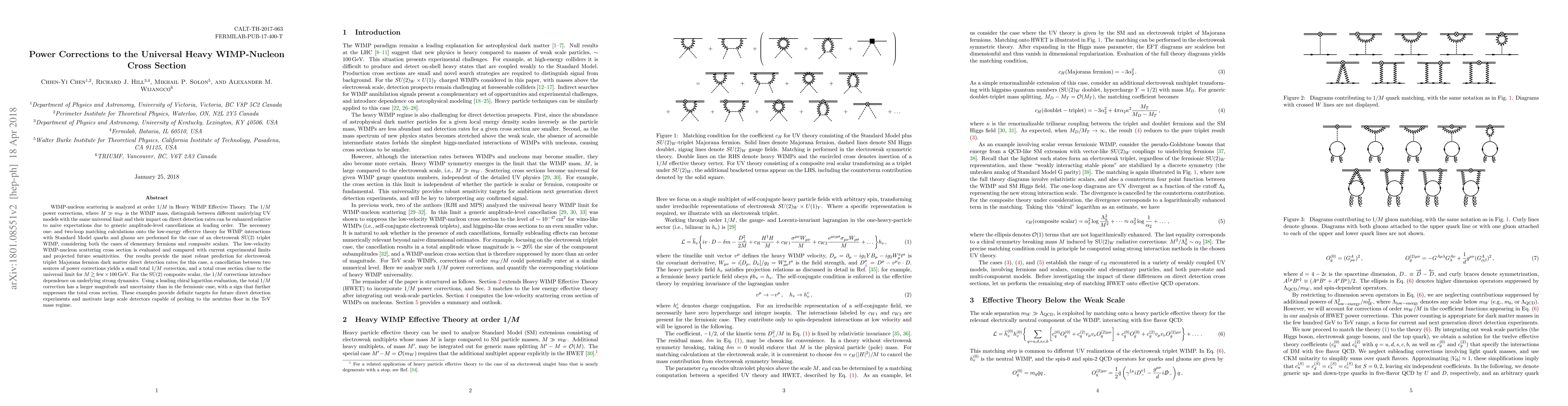 This paper analyzes $1/M$ power corrections in heavy WIMP-nucleon scattering within the Heavy WIMP Effective Theory, distinguishing between different UV models and their impact on direct detection rates. It provides robust predictions for electroweak triplet Majorana fermion dark matter, showing minimal $1/M$ corrections, while SU(2) composite scalars exhibit larger corrections dependent on strong dynamics, setting targets for future detection experiments.