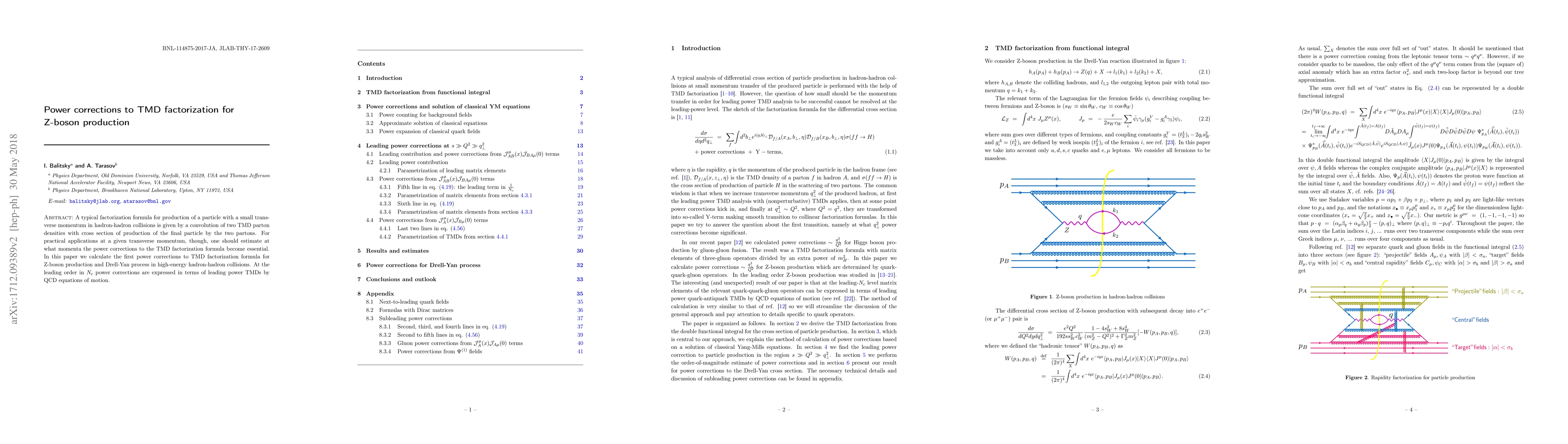 A typical factorization formula for production of a particle with a small transverse momentum in hadron-hadron collisions is given by a convolution of two leading-twist TMD parton densities with cross section of production of the final particle by the two partons. For practical applications at a given transverse momentum, though, one should estimate at what momenta the power corrections to TMD factorization formula due to higher-twist operators become essential. In this paper we calculate the first power corrections to TMD factorization formula for Z-boson production and Drell-Yan process in high-energy hadron-hadron collisions. At the leading order in $N_c$ power corrections are expressed in terms of leading-twist TMDs by QCD equations of motion.