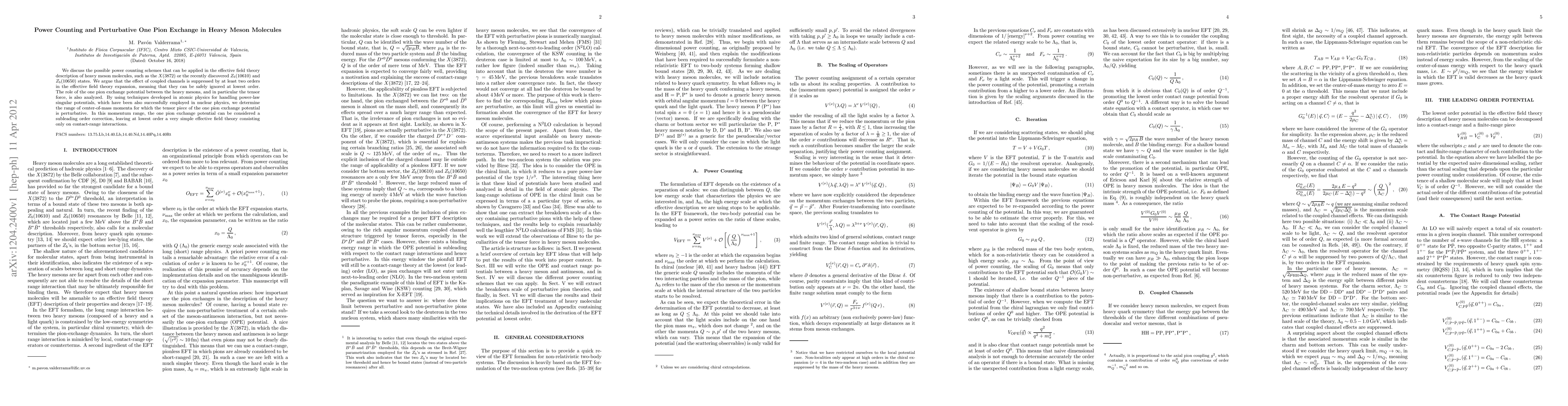This paper explores power counting schemes for effective field theory in heavy meson molecules, arguing that coupled channels effects are negligible at lowest order. It also analyzes the one pion exchange potential, determining its perturbative range and concluding that at lowest order, only contact-range interactions are significant.