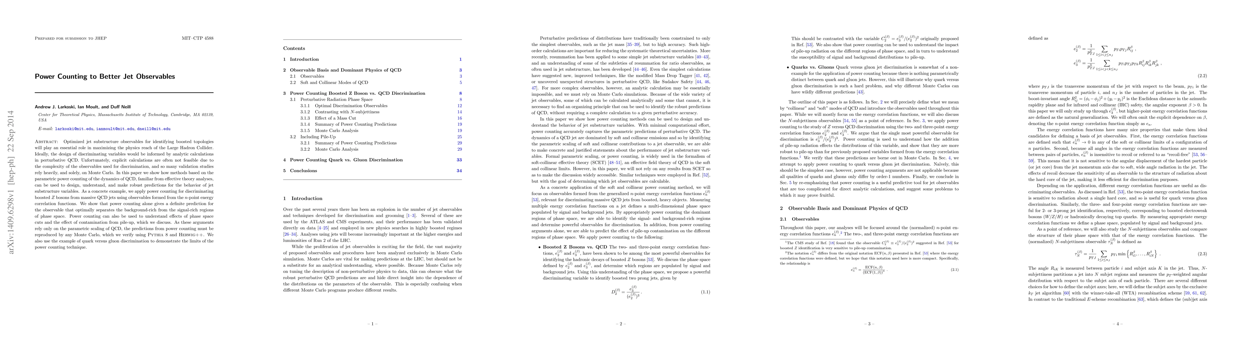 This paper demonstrates how power counting methods from effective theory can be utilized to design and predict the behavior of jet substructure observables in perturbative QCD, specifically for distinguishing boosted Z bosons from QCD jets. It verifies these predictions using Monte Carlo simulations and discusses the technique's limitations in quark versus gluon discrimination.