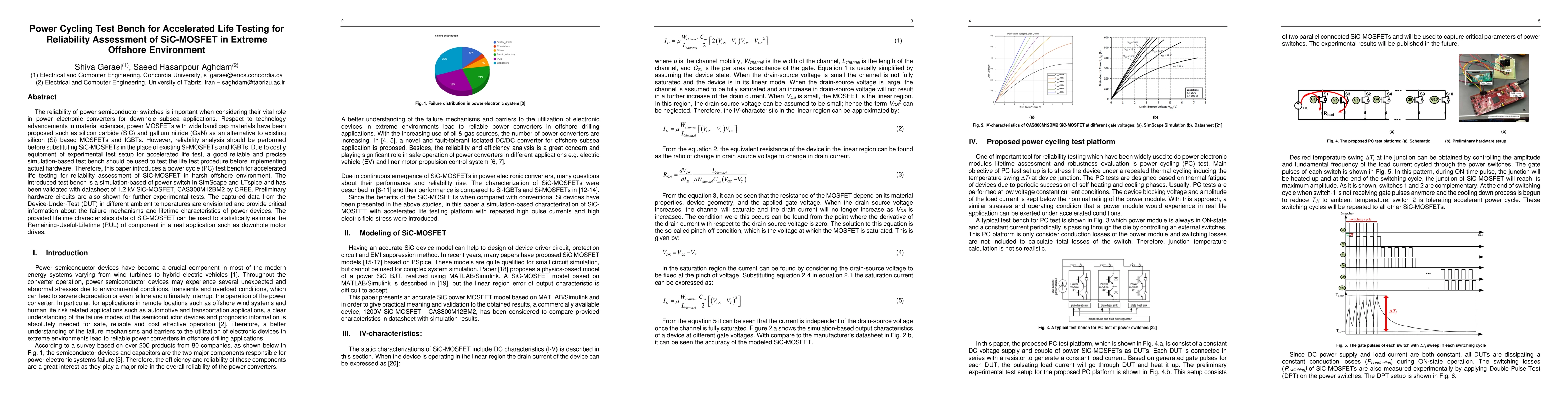 This paper introduces a simulation-based power cycling test bench for accelerated life testing of SiC-MOSFETs in extreme offshore environments, validated with CREE's 1.2 kV SiC-MOSFET. The test bench aims to assess reliability and failure mechanisms, providing data for estimating the Remaining-Useful-Lifetime (RUL) of SiC-MOSFETs in downhole motor drives.