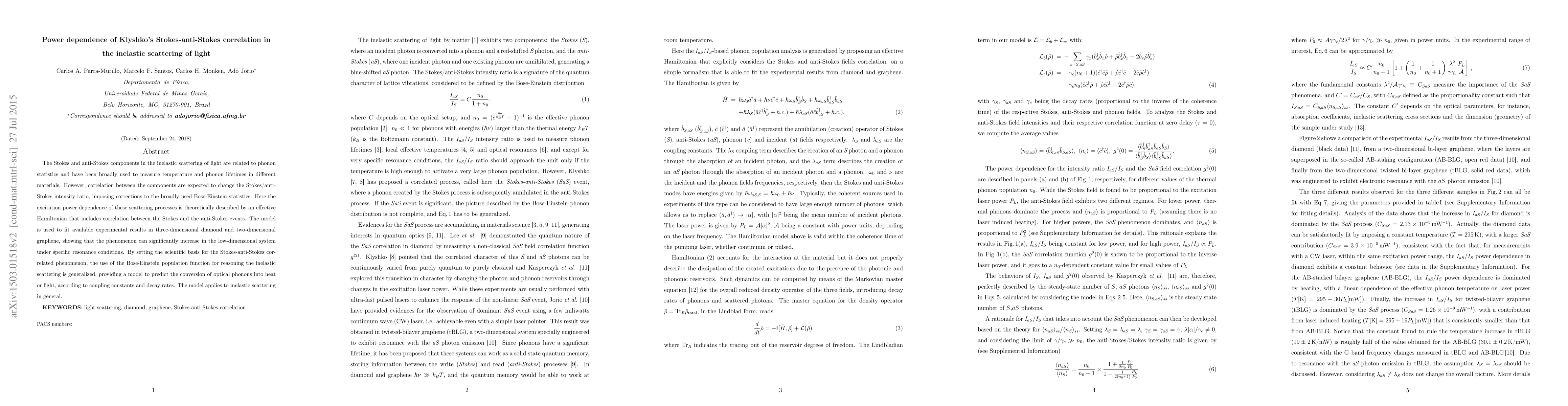 Researchers describe an effective Hamiltonian that models the power dependence of Klyshko's Stokes-anti-Stokes correlation in light scattering, increasing its significance in low-dimensional systems like graphene.