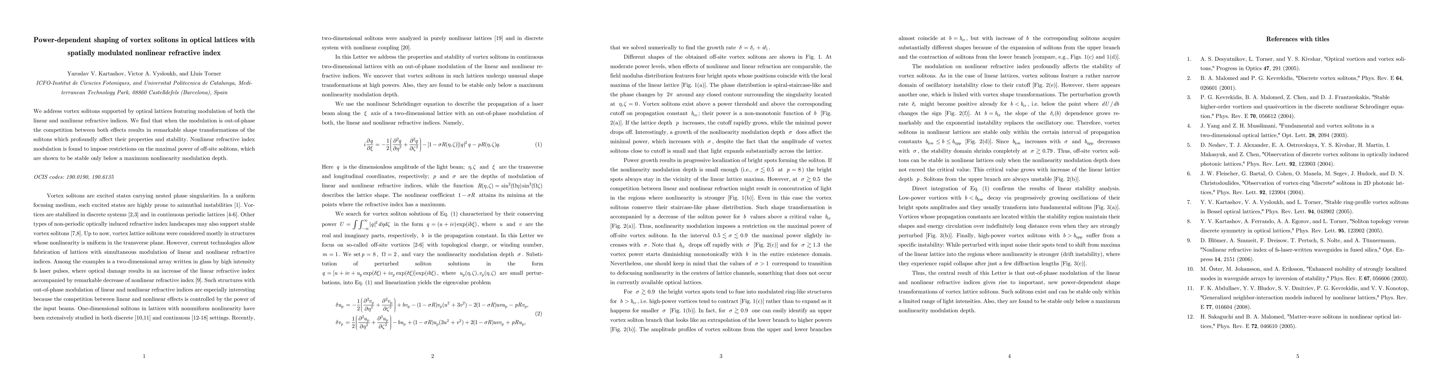 Yaroslav V. Kartashov, Lluis Torner, Vladimir V. Konotop et al.