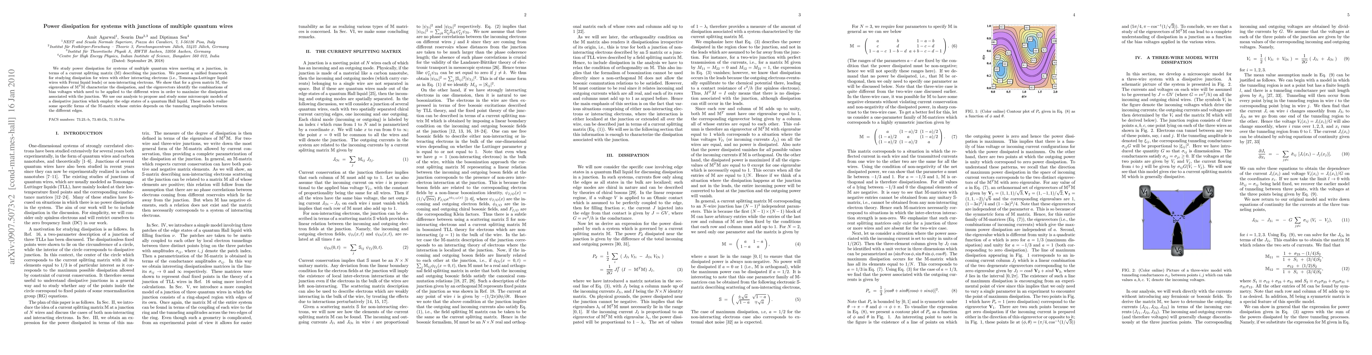 This paper develops a framework for analyzing power dissipation in systems of multiple quantum wires converging at a junction, using a current splitting matrix. It shows how the matrix's eigenvalues and eigenvectors determine dissipation characteristics and optimal bias voltages, and explores microscopic models employing quantum Hall edge states.