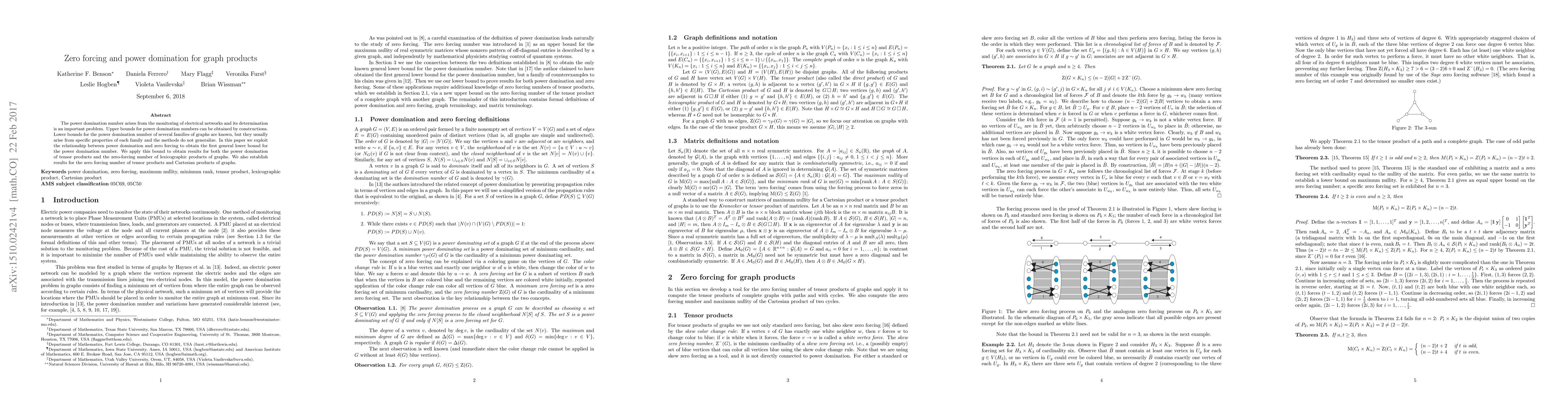 This paper establishes a general lower bound for the power domination number by leveraging the connection between power domination and zero forcing. It applies this bound to derive results for power domination in tensor products and zero-forcing numbers in lexicographic and Cartesian products of graphs.