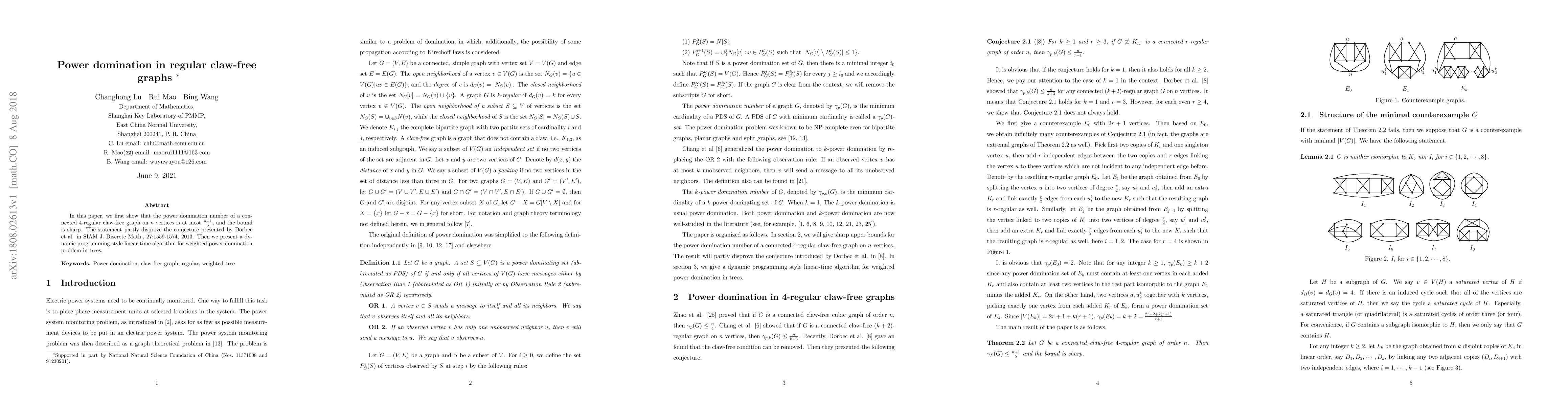 Summary: This paper establishes that the power domination number in $4$-regular claw-free graphs is at most $\frac{n+1}{5}$, disproving a previous conjecture, and introduces a linear-time algorithm for the weighted power domination problem in trees.
