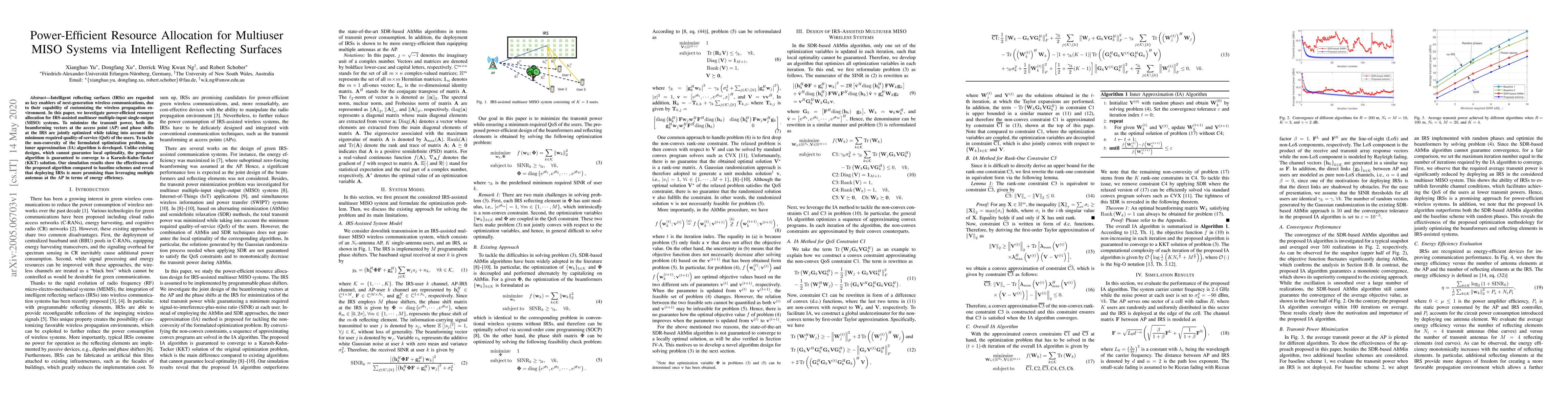 This paper proposes an intelligent reflecting surface (IRS)-assisted resource allocation method for multiuser MISO systems to minimize transmit power while ensuring user QoS. An inner approximation algorithm is developed to tackle the non-convex optimization problem, ensuring convergence to a KKT solution, and simulations show that IRSs enhance energy efficiency compared to multiple antennas at the access point.