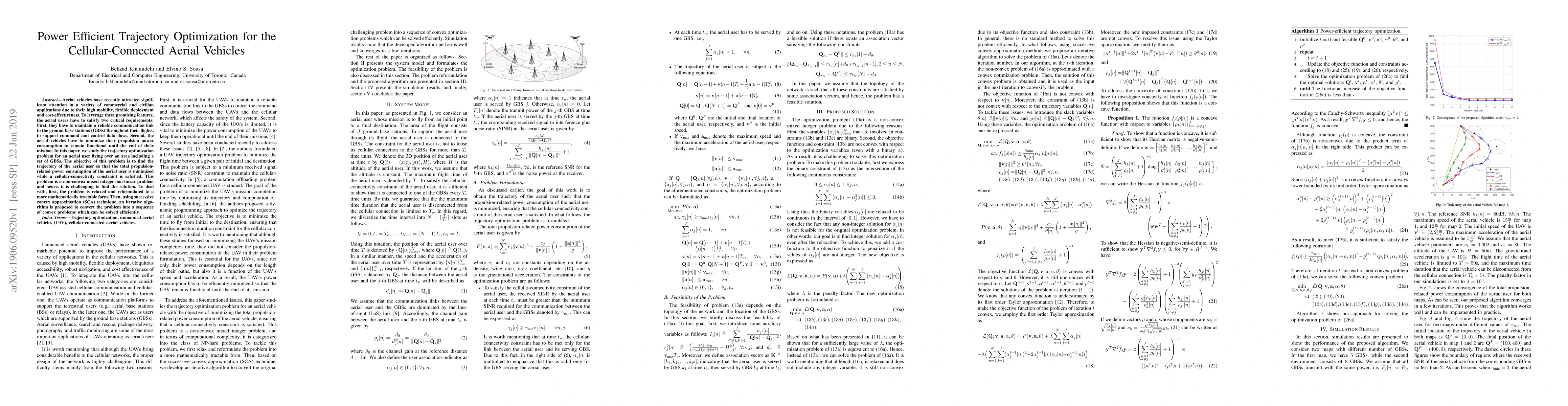 This paper addresses the optimization of aerial vehicle trajectories to minimize power consumption while maintaining cellular connectivity to ground base stations. It reformulates the non-convex problem into a tractable form using successive convex approximation, proposing an iterative algorithm to solve it efficiently.