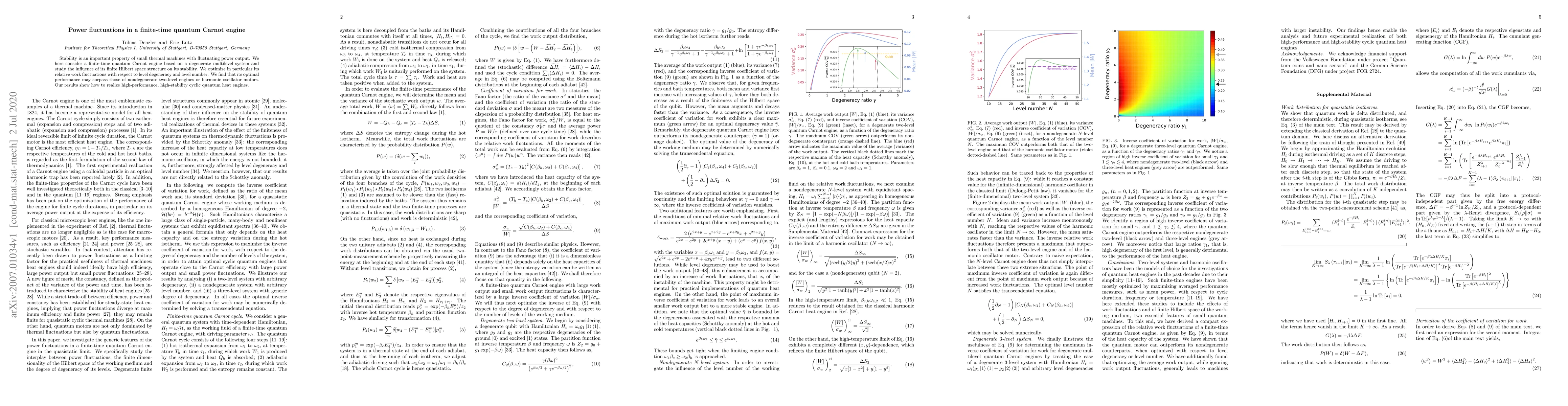 Stability is an important property of small thermal machines with fluctuating power output. We here consider a finite-time quantum Carnot engine based on a degenerate multilevel system and study the influence of its finite Hilbert space structure on its stability. We optimize in particular its relative work fluctuations with respect to level degeneracy and level number. We find that its optimal performance may surpass those of nondegenerate two-level engines or harmonic oscillator motors. Our results show how to realize high-performance, high-stability cyclic quantum heat engines.