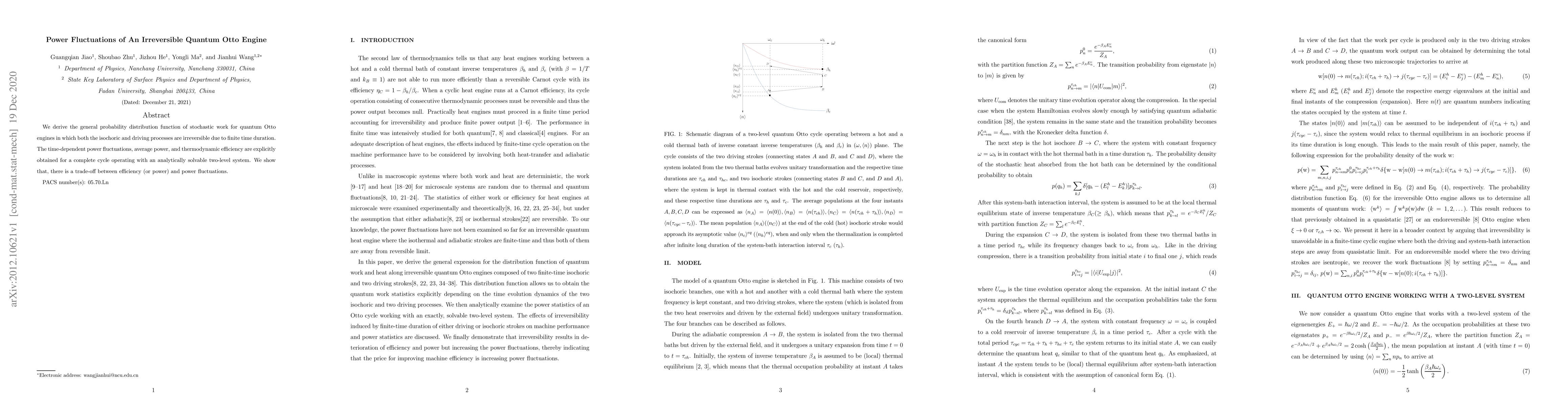 Researchers studied a quantum Otto engine with irreversible processes and found that efficiency and power fluctuations are trade-offs, providing insights into the performance of such engines.