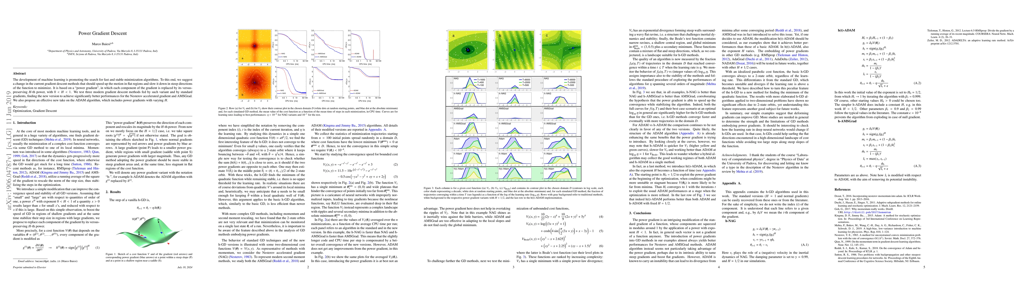 Summary: This paper proposes a "power gradient descent" method that modifies traditional gradient descent to accelerate convergence in flat regions and decelerate in steep regions by applying an $H$-th power to each gradient component. Experiments show that this approach improves the performance of Nesterov accelerated gradient and AMSGrad, and a new adaptive ADAM algorithm incorporating power gradients also shows promising results.