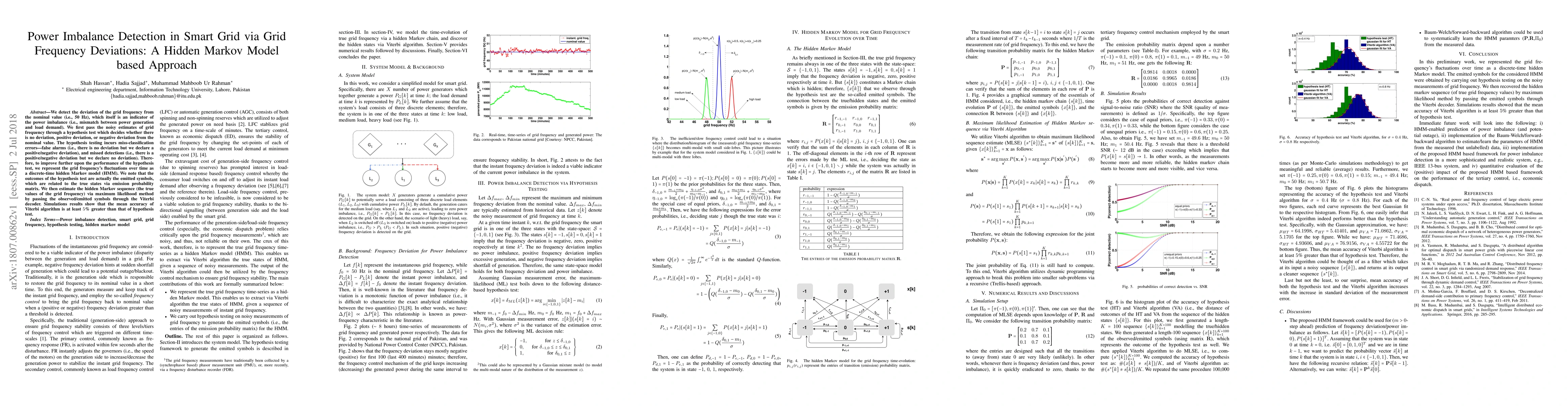 We detect the deviation of the grid frequency from the nominal value (i.e., 50 Hz), which itself is an indicator of the power imbalance (i.e., mismatch between power generation and load demand). We first pass the noisy estimates of grid frequency through a hypothesis test which decides whether there is no deviation, positive deviation, or negative deviation from the nominal value. The hypothesis testing incurs miss-classification errors---false alarms (i.e., there is no deviation but we declare a positive/negative deviation), and missed detections (i.e., there is a positive/negative deviation but we declare no deviation). Therefore, to improve further upon the performance of the hypothesis test, we represent the grid frequency's fluctuations over time as a discrete-time hidden Markov model (HMM). We note that the outcomes of the hypothesis test are actually the emitted symbols, which are related to the true states via emission probability matrix. We then estimate the hidden Markov sequence (the true values of the grid frequency) via maximum likelihood method by passing the observed/emitted symbols through the Viterbi decoder. Simulations results show that the mean accuracy of Viterbi algorithm is at least $5$\% greater than that of hypothesis test.