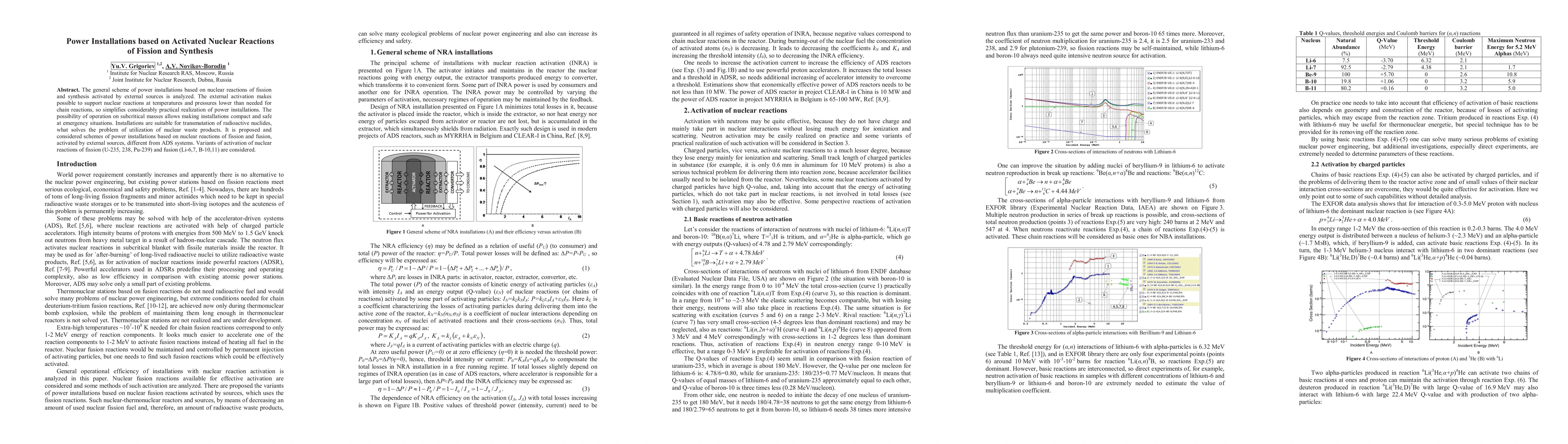 This paper analyzes power installations utilizing nuclear fission and fusion reactions activated by external sources, which enable reactions at lower temperatures and pressures, enhancing practicality and safety. It proposes compact, subcritical mass installations for nuclear waste transmutation and explores various activation methods for fission and fusion reactions.