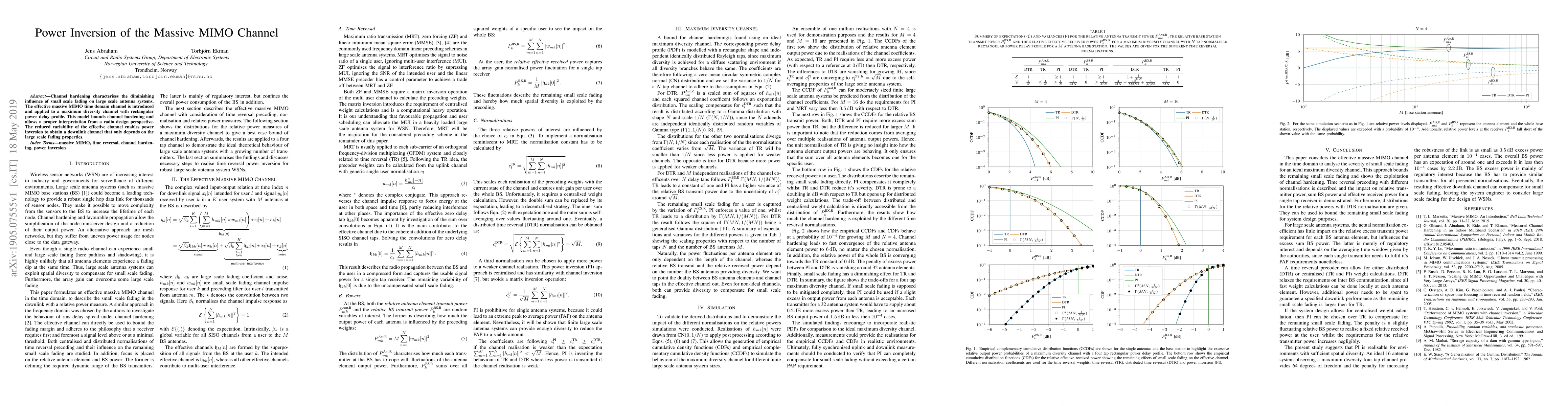 Researchers introduced a model for massive MIMO channels that bounds channel hardening, enabling power inversion to reduce variability and obtain a downlink channel dependent only on large scale fading properties.