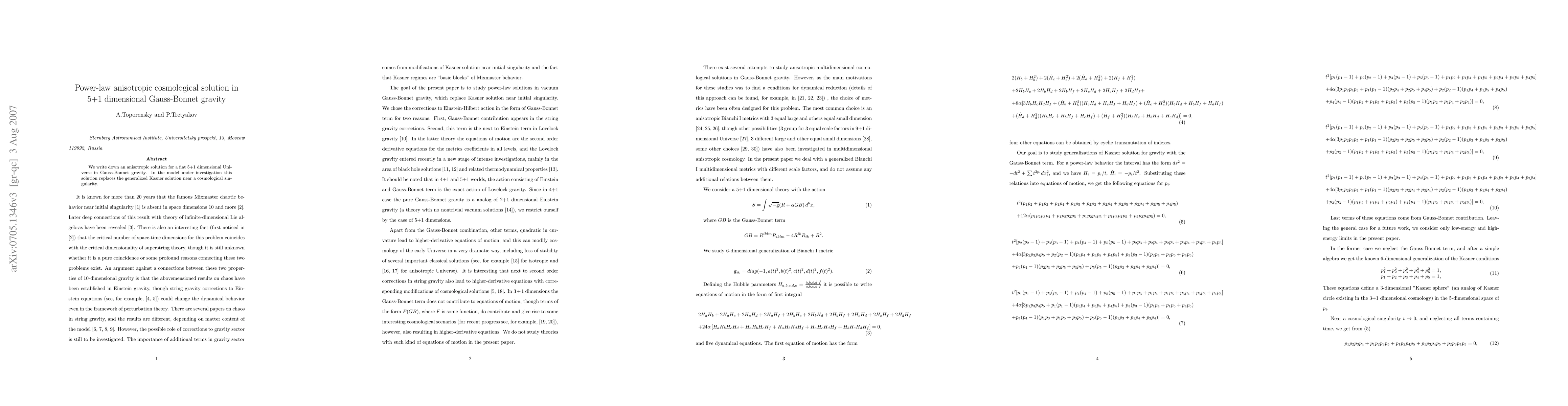 Researchers develop a new cosmological solution in 5+1 dimensional Gauss-Bonnet gravity, replacing an existing solution near a cosmic singularity, offering alternative insights into the behavior of the universe.