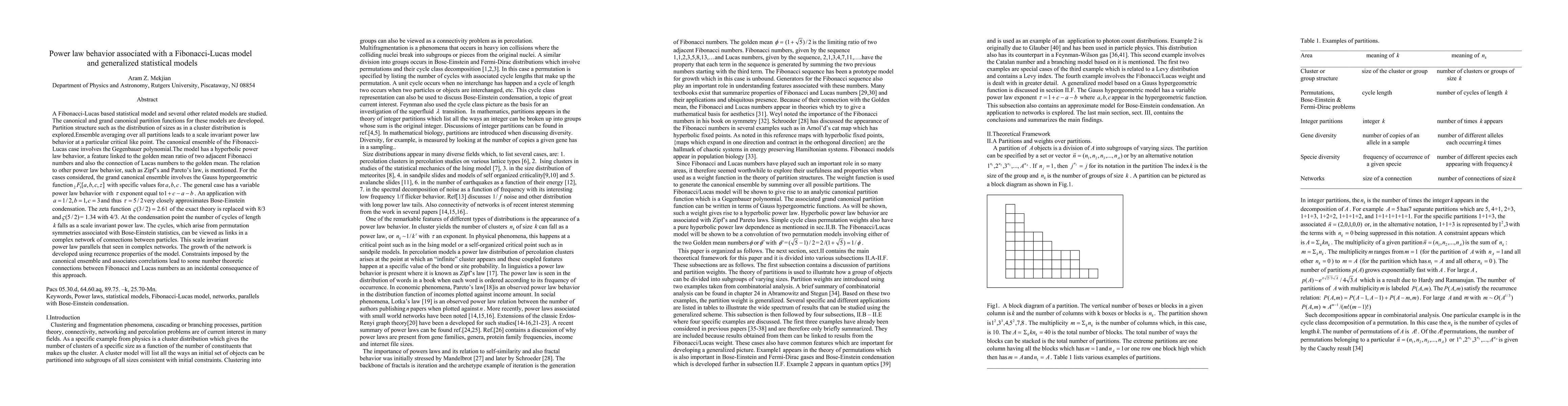 Researchers discovered power law behavior in statistical models inspired by Fibonacci-Lucas numbers, exhibiting connections to complex networks and Bose-Einstein condensation, with implications for understanding scale-invariant phenomena.