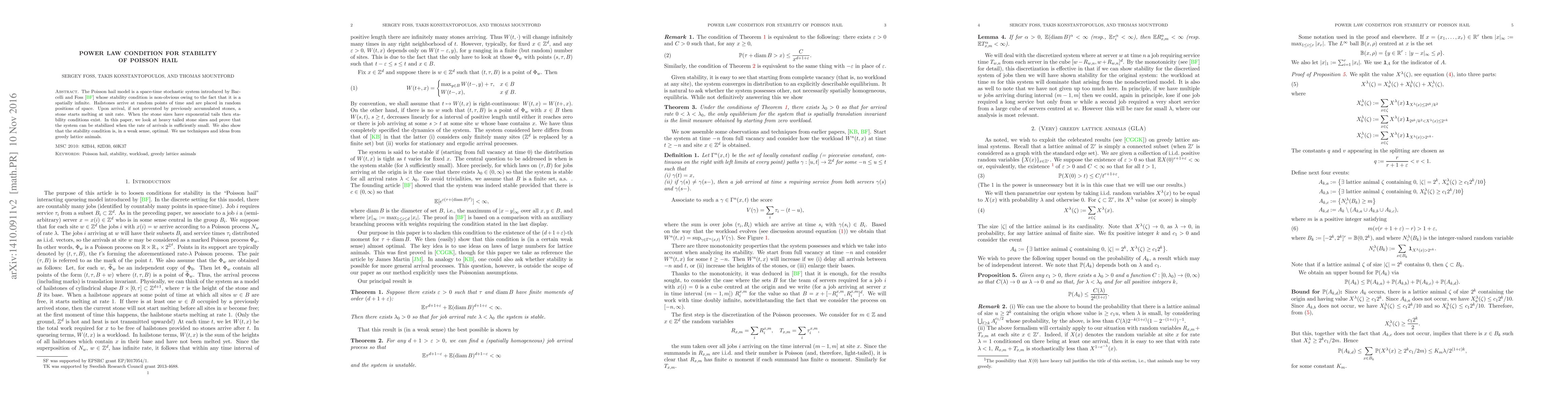 Researchers developed a power law condition to ensure stability in Poisson hail models as rate parameter lambda approaches zero, showing it's optimal in a weak sense.