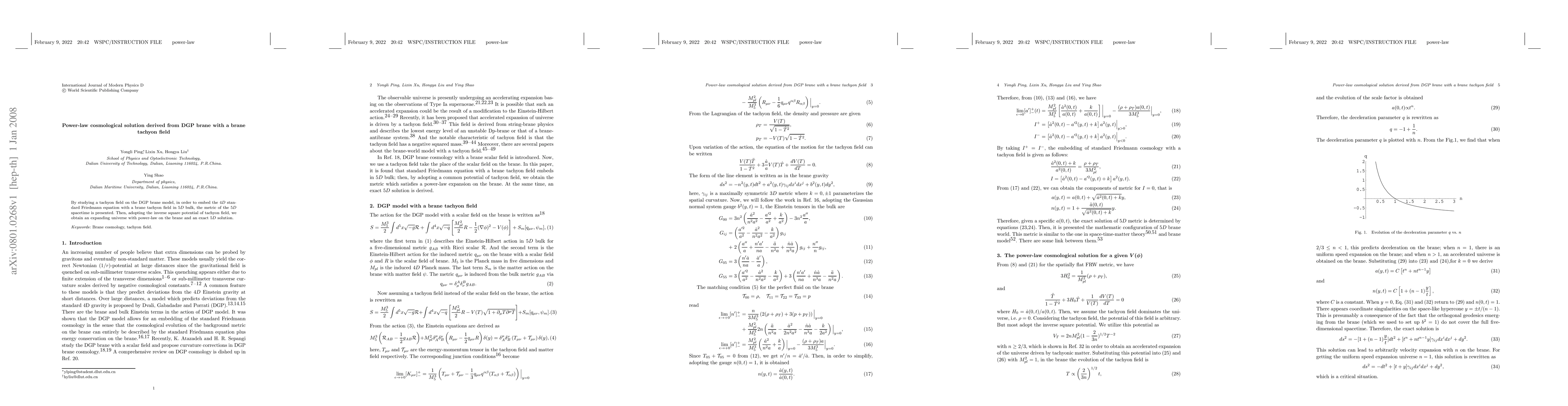 This paper explores a tachyon field on the DGP brane model, deriving a power-law cosmological solution that embeds the 4D Friedmann equation in a 5D bulk. The study utilizes an inverse square potential for the tachyon field to achieve an expanding universe with a power-law behavior on the brane.