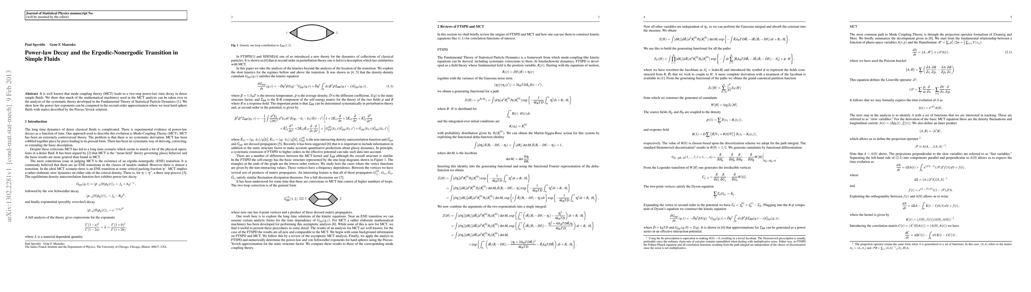 This paper demonstrates that the mathematical framework of mode coupling theory (MCT) can be applied to the Fundamental Theory of Statistical Particle Dynamics, revealing a two-step power-law decay in dense simple fluids. The study computes power-law exponents in a second-order approximation using hard-sphere fluids and the Percus-Yevick solution.