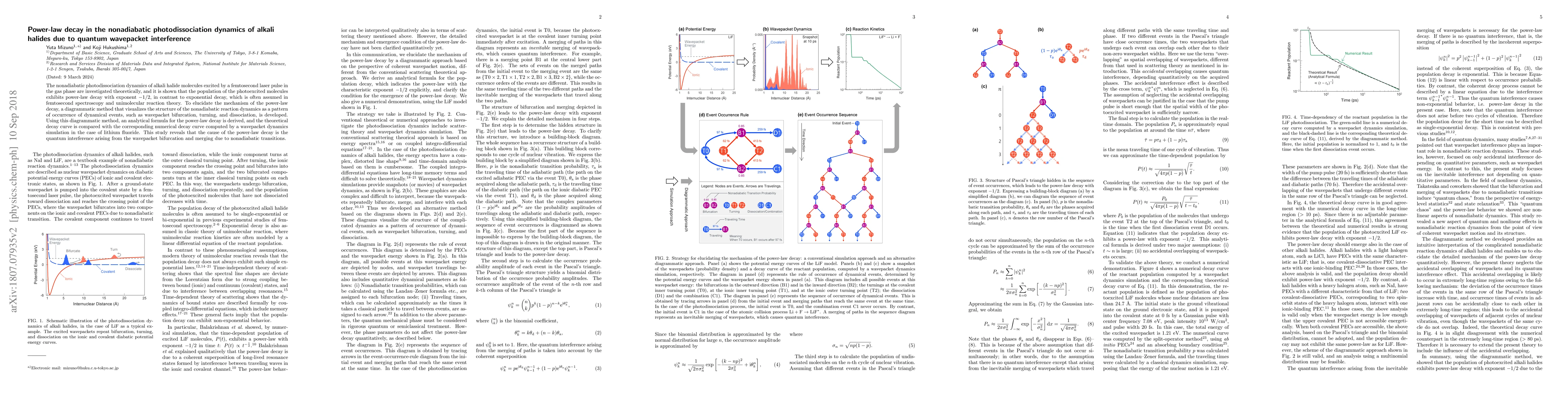 This research identifies power-law decay (-1/2 exponent) in the photodissociation dynamics of alkali halide molecules, contrasting the usual exponential decay assumption. The cause is quantum interference from wavepacket bifurcation and merging due to nonadiabatic transitions, revealed through a novel diagrammatic method and wavepacket dynamics simulation in lithium fluoride.