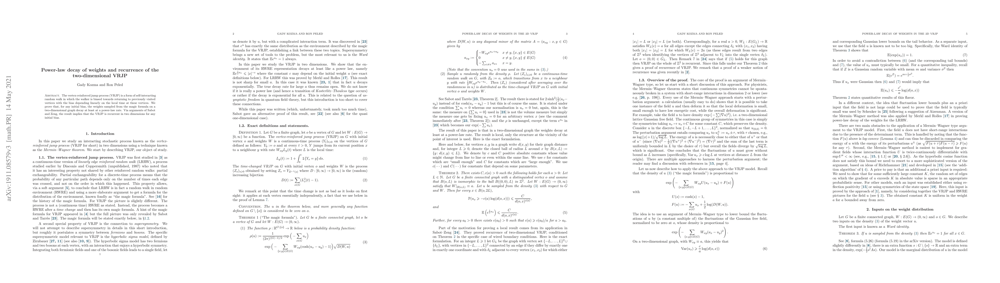 The vertex-reinforced jump process (VRJP) is a form of self-interacting random walk in which the walker is biased towards returning to previously visited vertices with the bias depending linearly on the local time at these vertices. We prove that, for any initial bias, the weights sampled from the magic formula on a two-dimensional graph decay at least at a power-law rate. Via arguments of Sabot and Zeng, the result implies that the VRJP is recurrent in two dimensions for any initial bias.