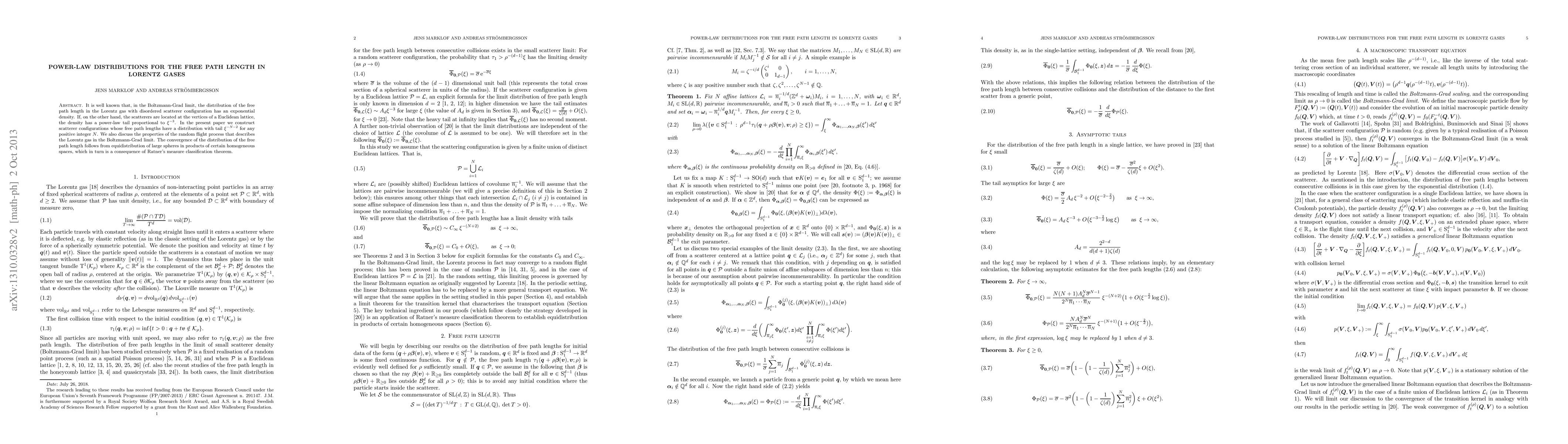 It is well known that, in the Boltzmann-Grad limit, the distribution of the free path length in the Lorentz gas with disordered scatterer configuration has an exponential density. If, on the other hand, the scatterers are located at the vertices of a Euclidean lattice, the density has a power-law tail proportional to xi^{-3}. In the present paper we construct scatterer configurations whose free path lengths have a distribution with tail xi^{-N-2} for any positive integer N. We also discuss the properties of the random flight process that describes the Lorentz gas in the Boltzmann-Grad limit. The convergence of the distribution of the free path length follows from equidistribution of large spheres in products of certain homogeneous spaces, which in turn is a consequence of Ratner's measure classification theorem.