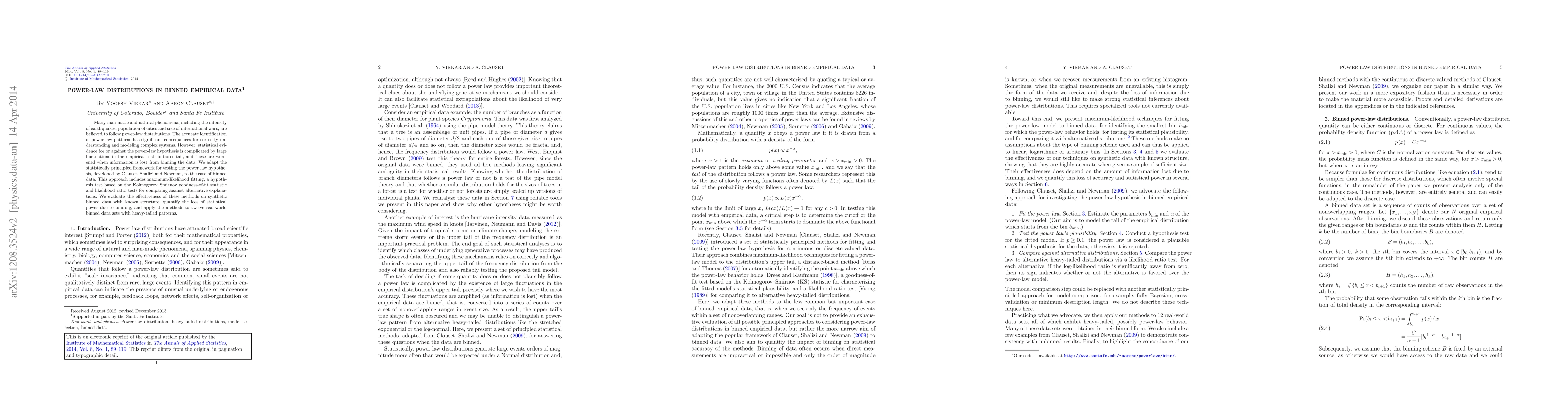 This paper adapts a statistically principled framework for testing power-law distributions to binned empirical data, addressing the challenges posed by large fluctuations in the data's tail. The authors evaluate their methods on synthetic and real-world datasets, demonstrating the loss of statistical power due to binning and the effectiveness of their approach.