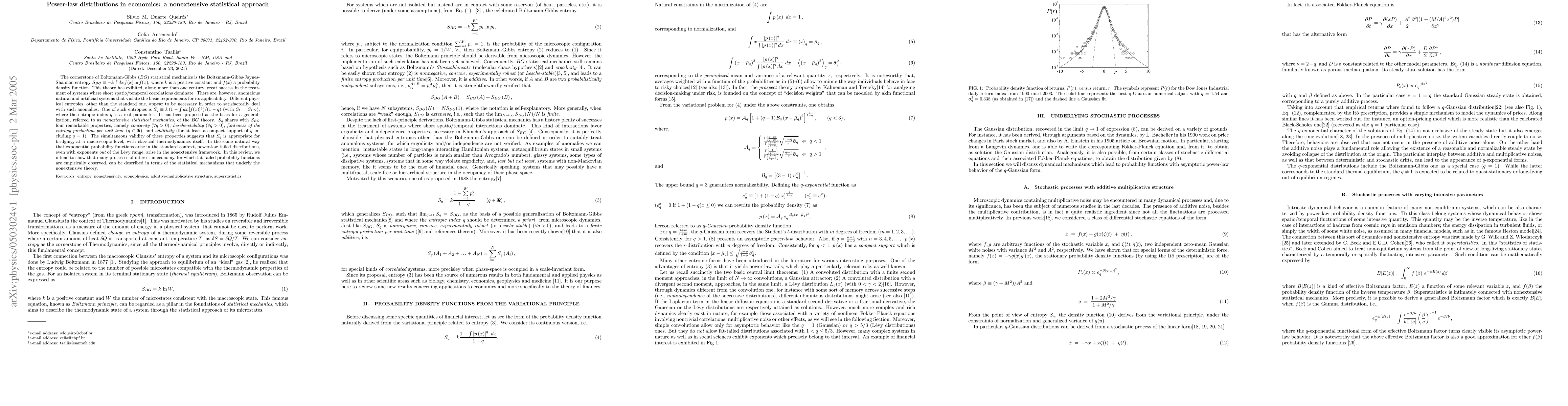 This paper introduces a nonextensive statistical approach to economics, proposing a power-law distribution $S_q$ as an alternative to the Boltzmann-Gibbs entropy, and explores its application to processes with fat-tailed probability functions in economies.