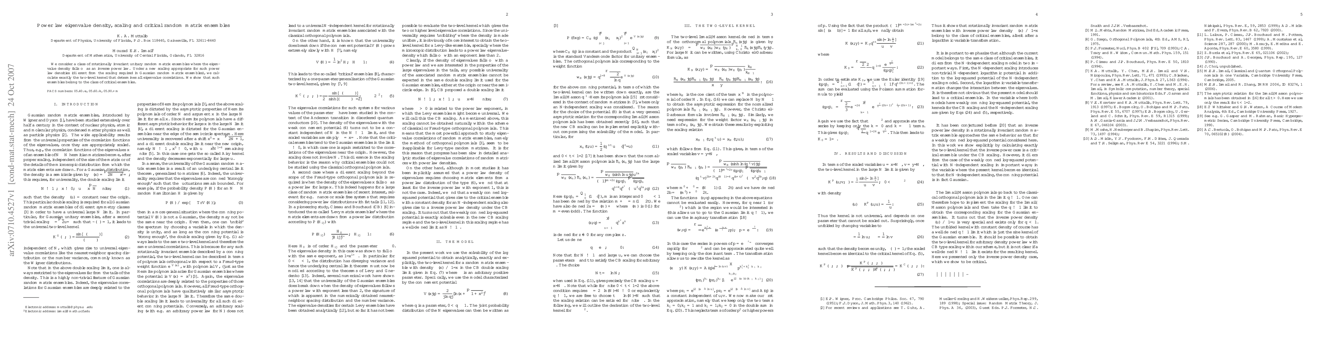 This paper investigates rotationally invariant unitary random matrix ensembles with power law eigenvalue density, deriving the exact two-level kernel under a unique scaling. It demonstrates that these ensembles are critical, differing from Gaussian random matrix ensembles in their scaling behavior.