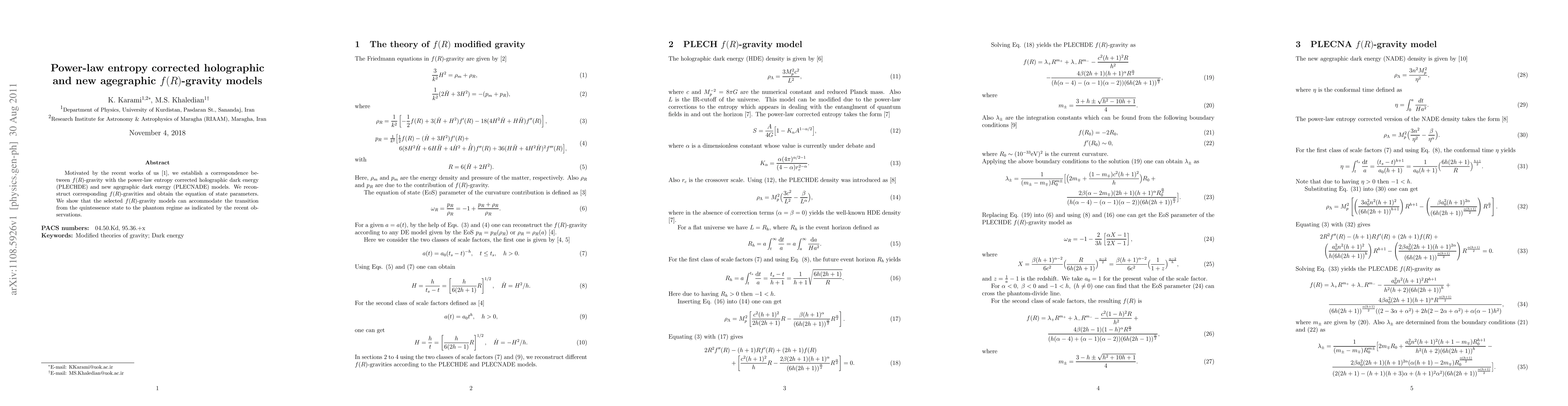 This paper establishes a connection between f(R)-gravity models and power-law entropy corrected holographic and new agegraphic dark energy models, reconstructing the corresponding f(R)-gravity forms and analyzing their equation of state parameters. It demonstrates that these models can support the transition from quintessence to the phantom regime, consistent with recent observational data.