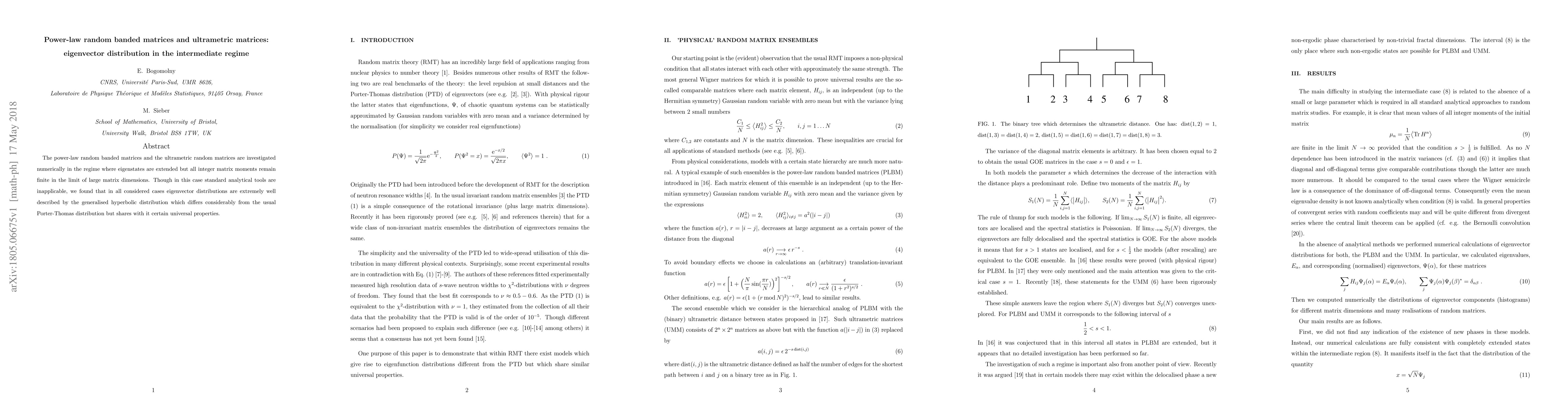 The power-law random banded matrices and the ultrametric random matrices are investigated numerically in the regime where eigenstates are extended but all integer matrix moments remain finite in the limit of large matrix dimensions. Though in this case standard analytical tools are inapplicable, we found that in all considered cases eigenvector distributions are extremely well described by the generalised hyperbolic distribution which differs considerably from the usual Porter-Thomas distribution but shares with it certain universal properties.